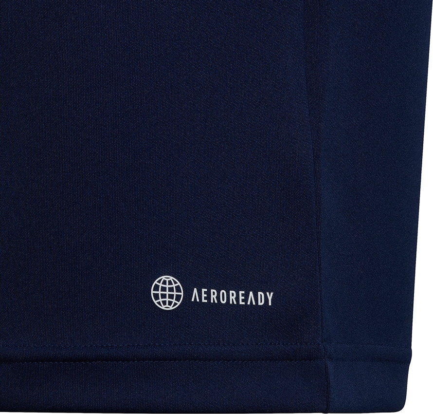Granatowy projekt pochodzący z odświeżonej kolekcji Entrada 22 prezentuje klasyczny i ponadczasowy styl, który z powodzeniem można dopasować do każdego stroju piłkarskiego swojego dziecka.