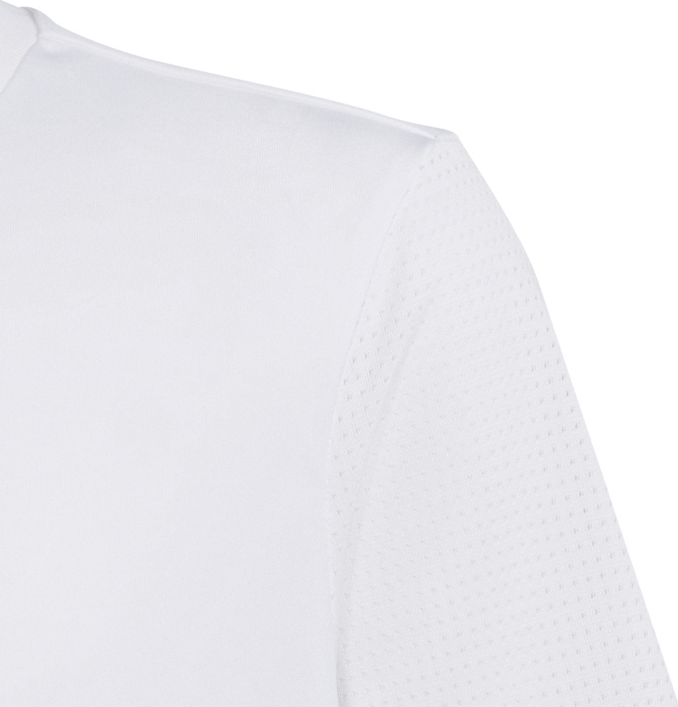 Koszulkę wyprodukowano z szybkoschnących włókien wspartych technologią Aeroready odpowiadającą za odprowadzenie nadmiaru wilgoci do zewnętrznych warstw w celu pozostawienia długotrwałego uczucia świeżości. Siateczkowe rękawy ułatwiają dostęp powierza, aby usprawnić proces wentylacji skóry. Poliestrowe włókna powstały w procesie recyklingu, dlatego aktywnie wspierasz walkę z zanieczyszczeniem plastikiem.