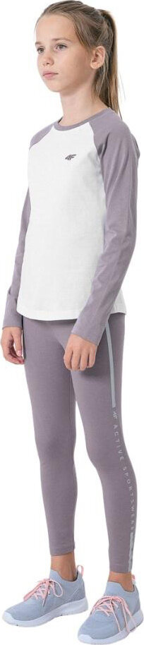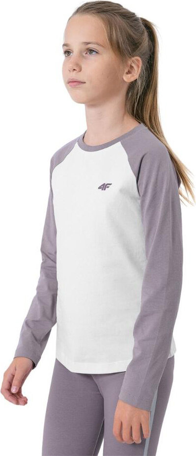 Koszulka dla dziewczynki 4F biało-fioletwa HJZ22 JTSDL001 51S
