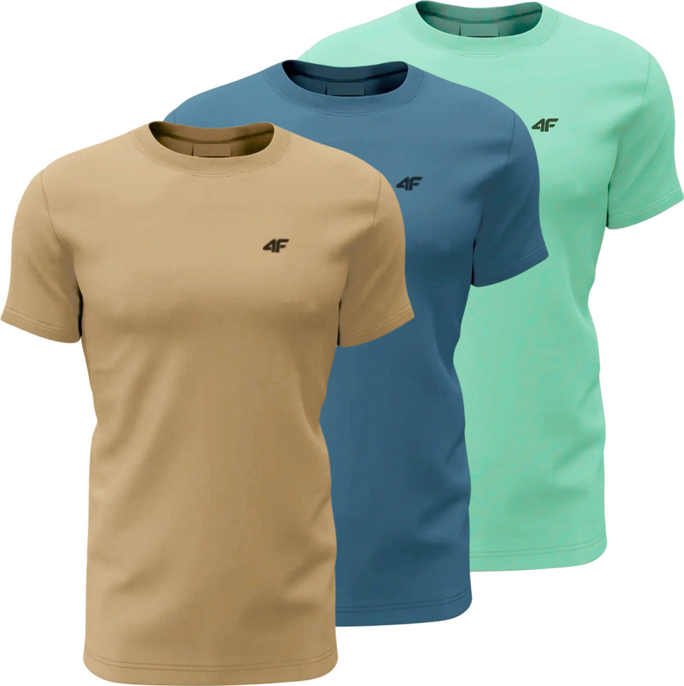 Koszulka męska 4F M3094 3pak beżowa, niebieska, turkusowa 4FWSS25TTSHM3094 91S