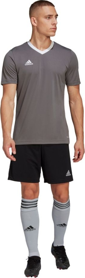 Fason pochodzący z kolekcji Entrada 22 zademonstrowano w szarej wersji, która daje szeroki wachlarz możliwości kompletowania sportowych zestawień.