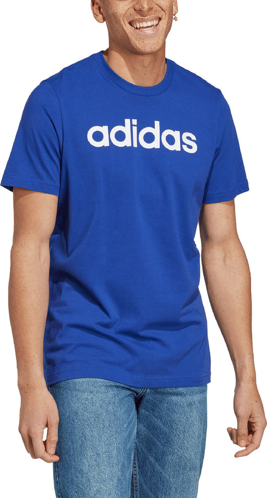 Koszulka męska adidas Essentials Single Jersey Linear Embroidered Logo niebieska IC9279
