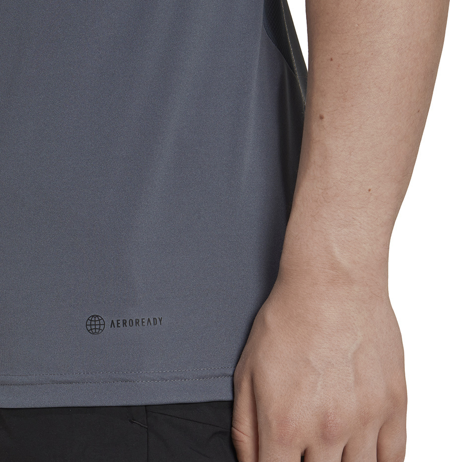 Koszulkę wyprodukowano z szybkoschnących włókien wspartych technologią Aeroready odpowiadającą za odprowadzenie nadmiaru wilgoci do zewnętrznych warstw w celu pozostawienia długotrwałego uczucia świeżości.