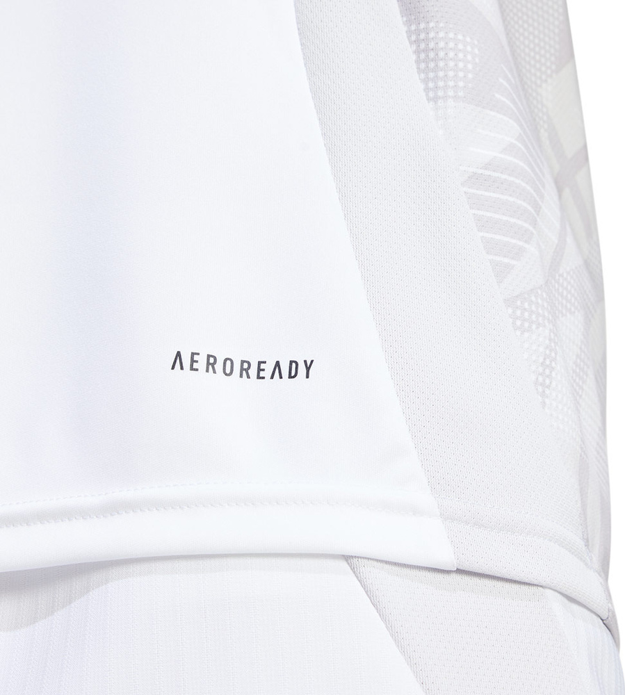 Koszulkę wyprodukowano z szybkoschnących włókien wspartych technologią Aeroready odpowiadającą za odprowadzenie nadmiaru wilgoci do zewnętrznych warstw w celu pozostawienia długotrwałego uczucia świeżości.
