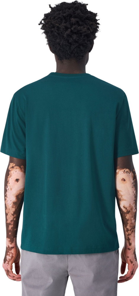 Zielona koszulka została uszyta z bawełnianych włókien zapobiegających powstawaniu podrażniań i dodatkowo dbających o swobodny przepływ powietrza.