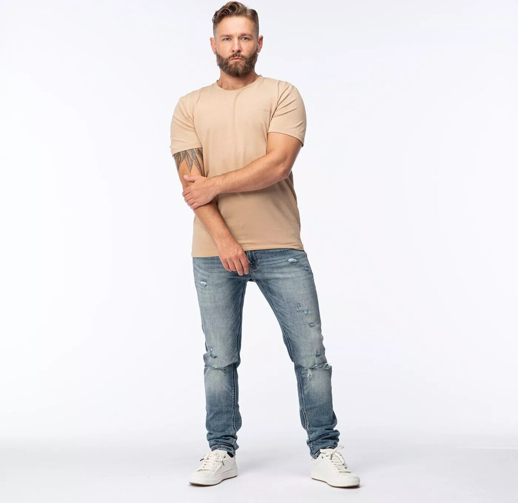 Klasyczna beżowa koszulka powinna znaleźć się w szafie każdego mężczyzny.
