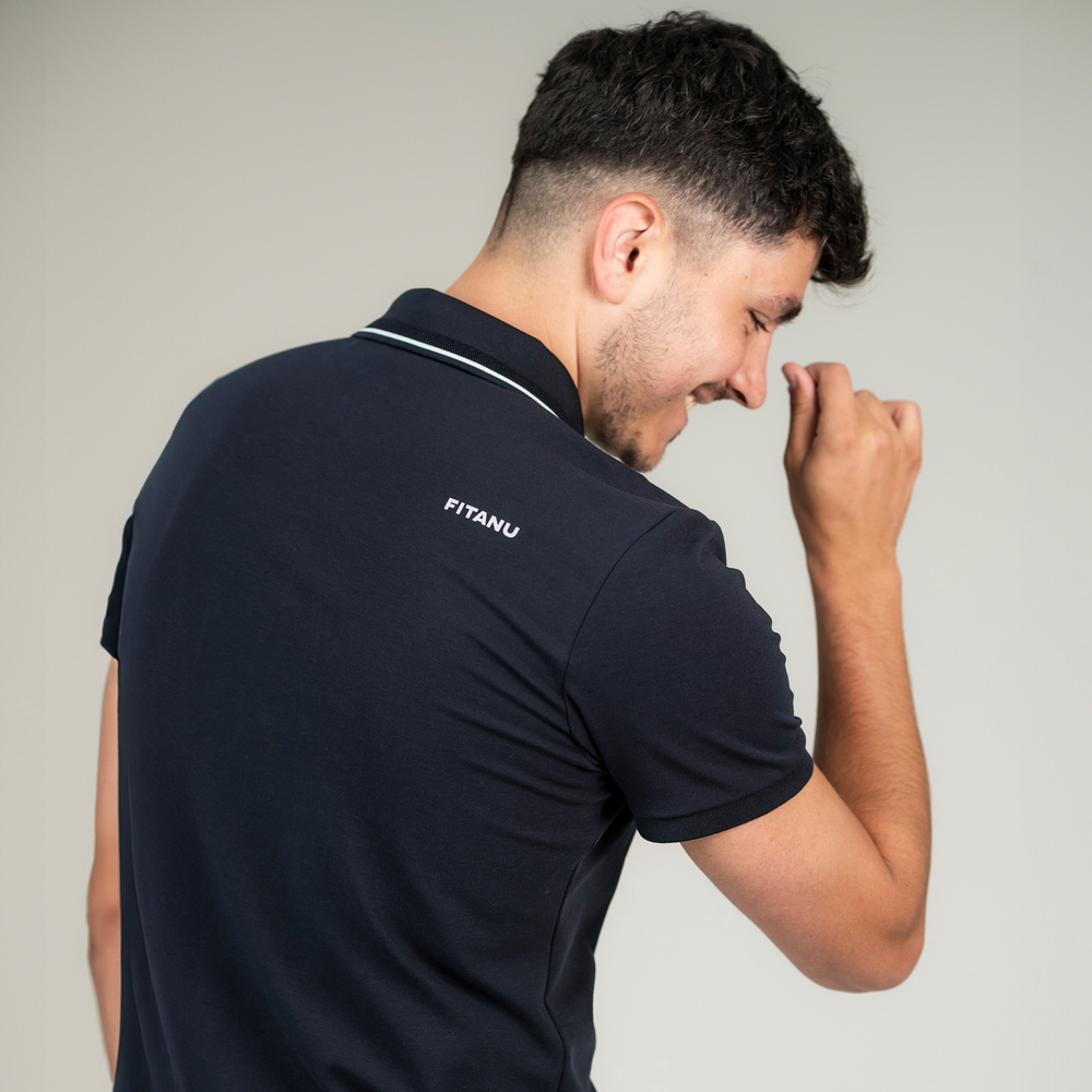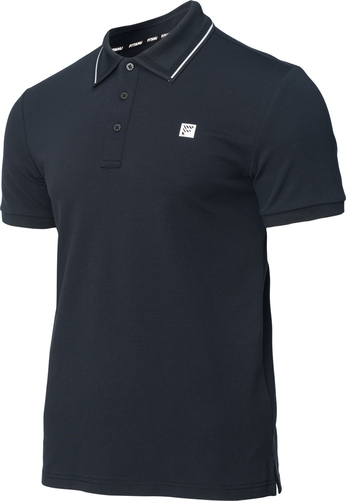 Męska czarna koszulka polo farux marki fitanu została uszyta z wysokiej jakości materiałów syntetycznych.