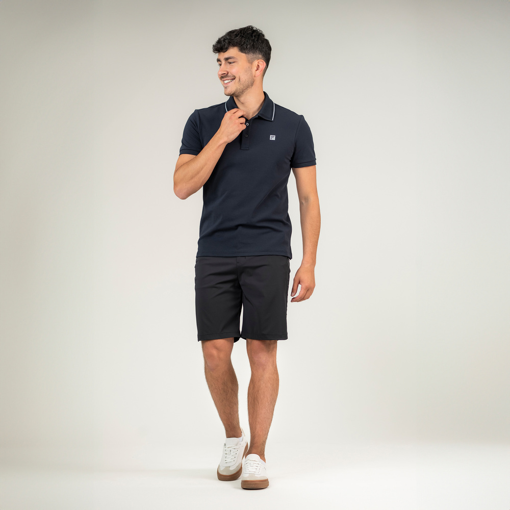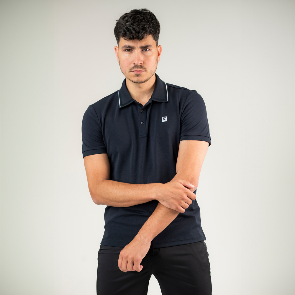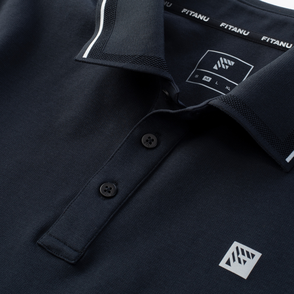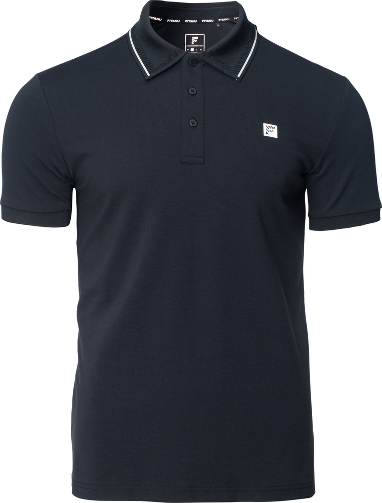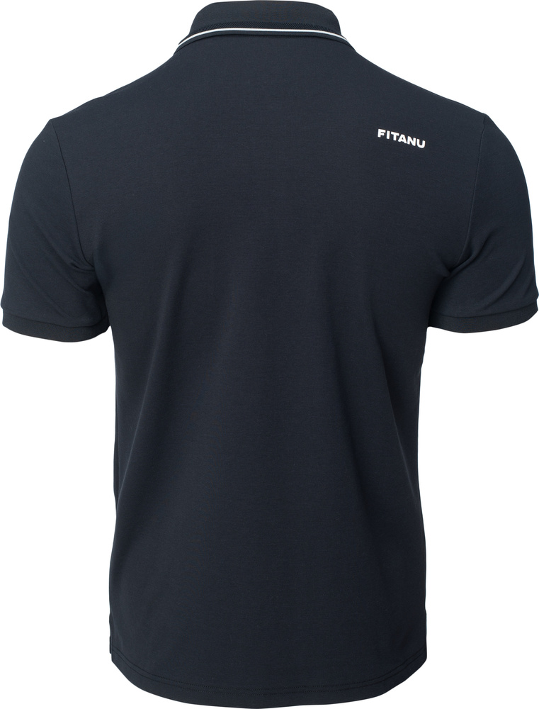 Męska czarna koszulka polo farux marki fitanu została uszyta z wysokiej jakości materiałów syntetycznych.