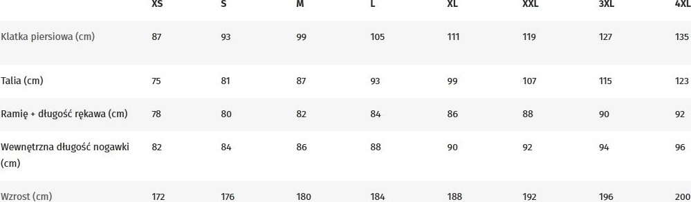 Rozmiar | XS | S | M | L | XL | XXL | 3XL | 4XL |