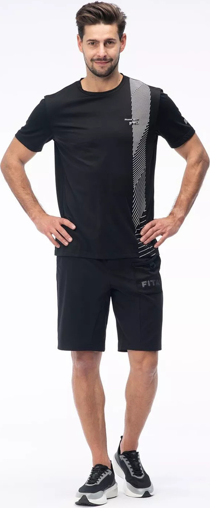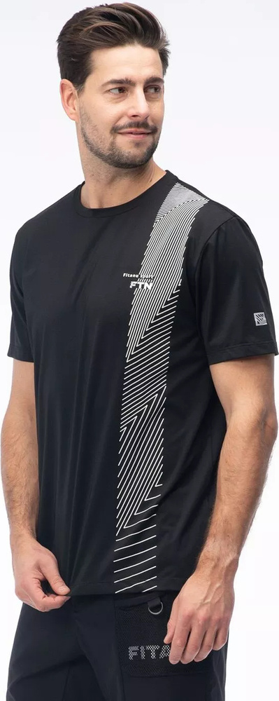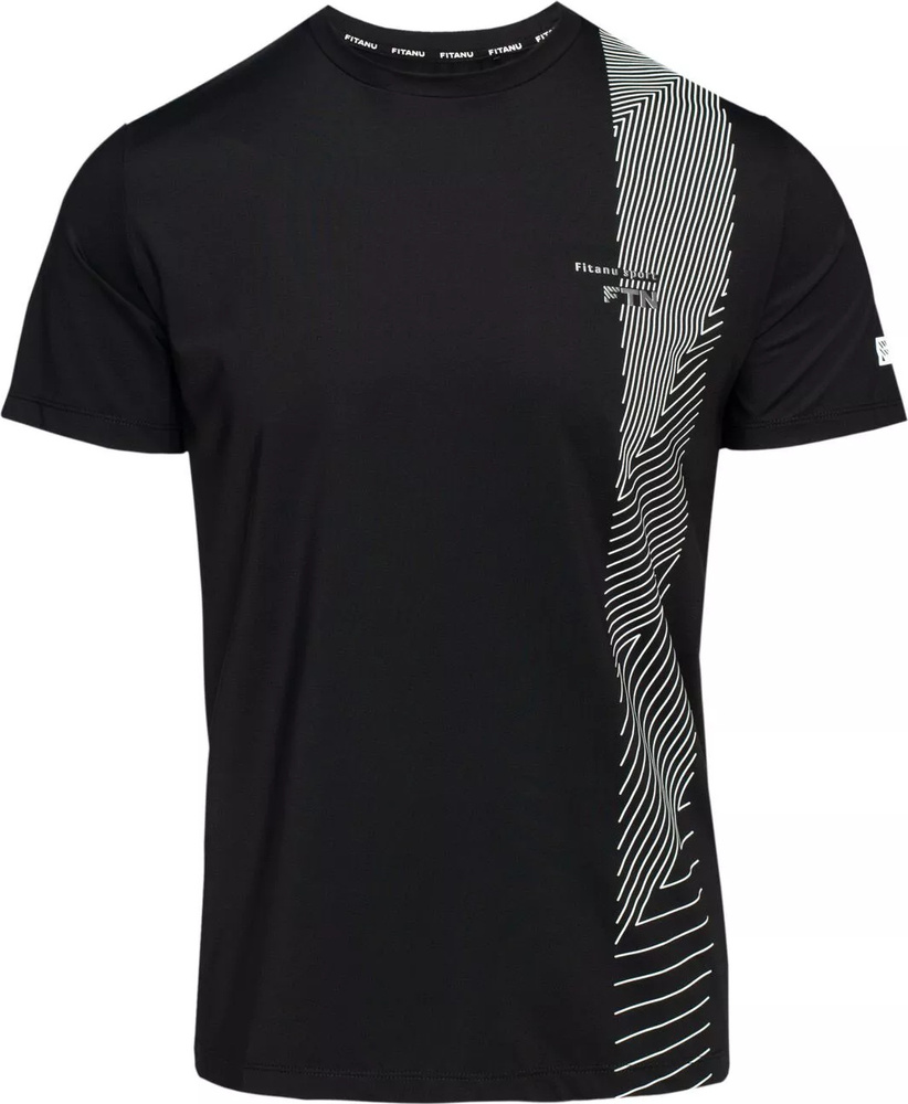 Męska czarna koszulka igli marki fitanu posiada oryginalny nadruk z delikatnym logo brandu.