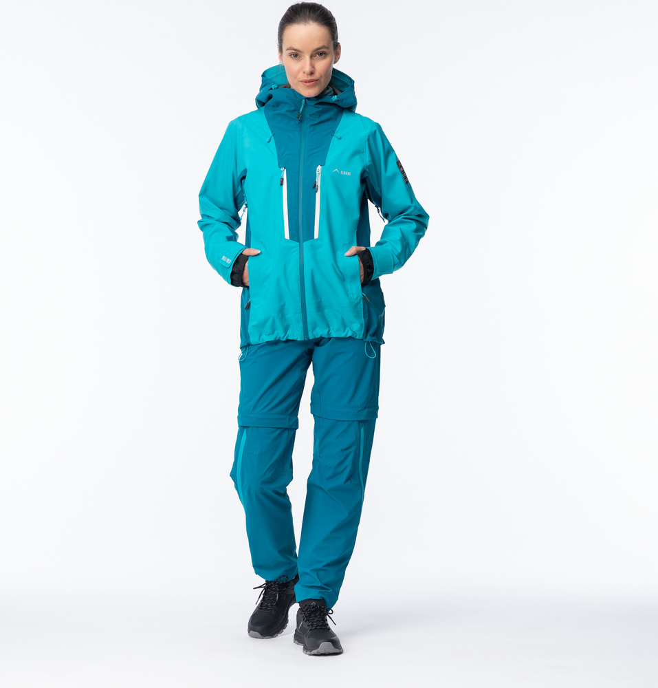 Jej wodoodporność wynosi 15000 mm h2o, a oddychalność to 10000 g/m2/24h.
