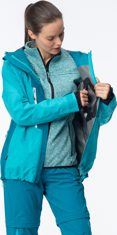 Jej wodoodporność wynosi 15000 mm h2o, a oddychalność to 10000 g/m2/24h.