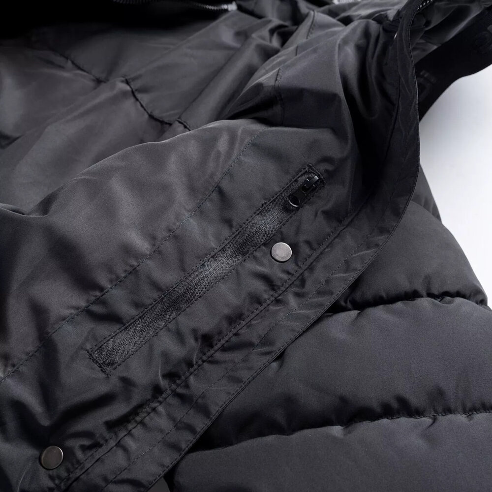 Wysoki kołnierz oraz obszerny kaptur osłoni cię przed powiewami zimnego powietrza.