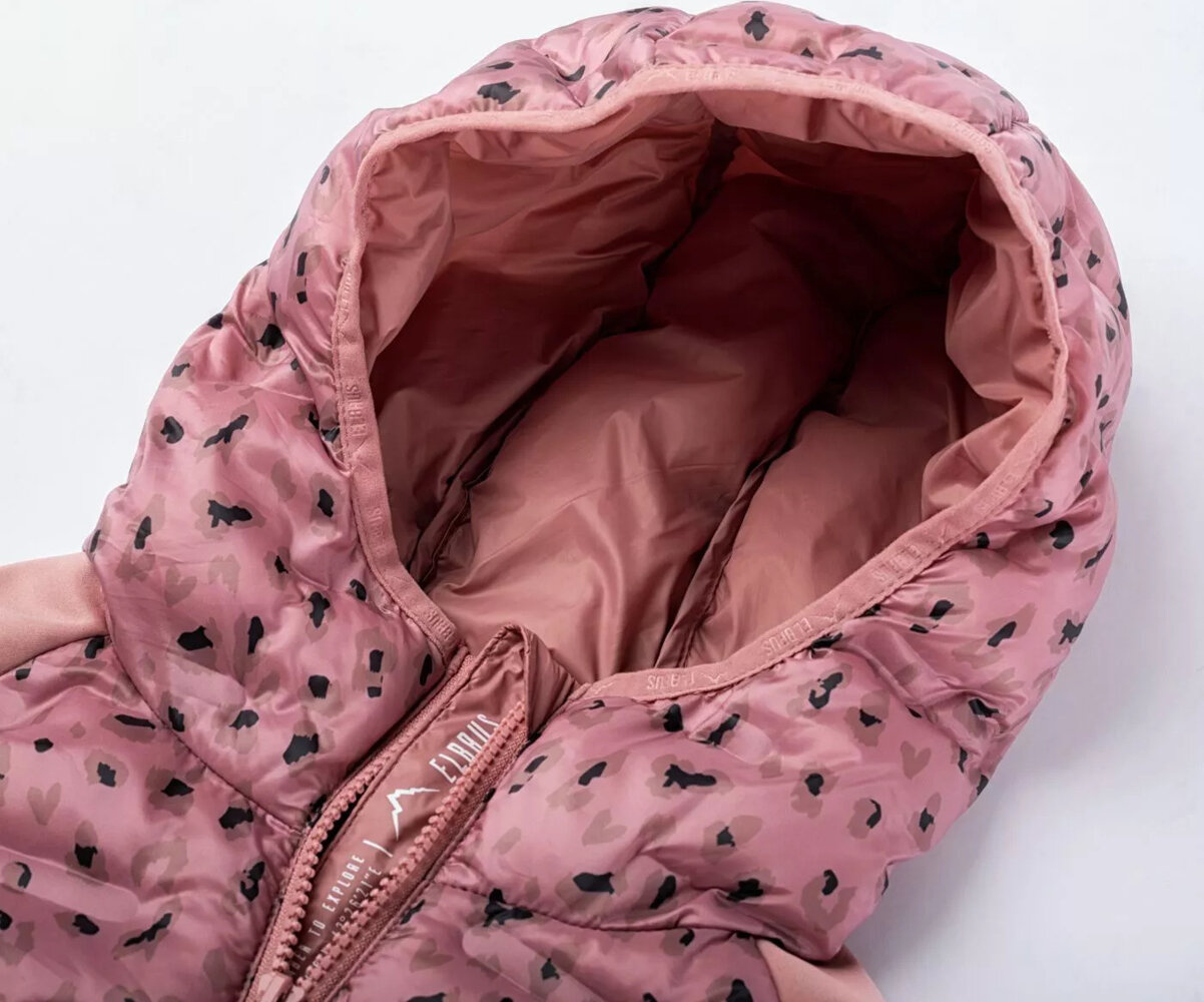 Zintegrowany kaptur również posiada wypełnienie, a elastyczna lamówka pozwala lepiej dopasować kaptur, który ochroni dzieci przed powiewami wiatru i lekkim deszczem.