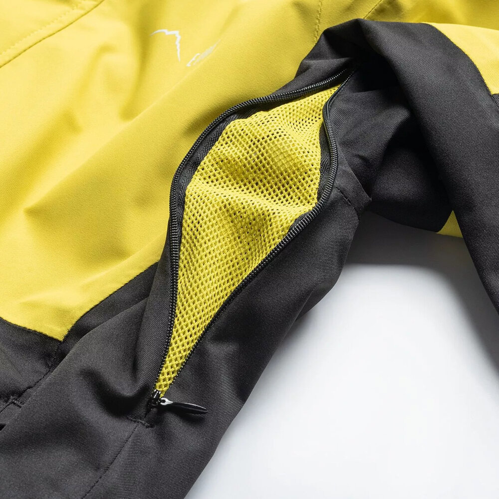 Regulowane mankiety oraz ściągacz w talii zapobiegają przesuwaniu się.