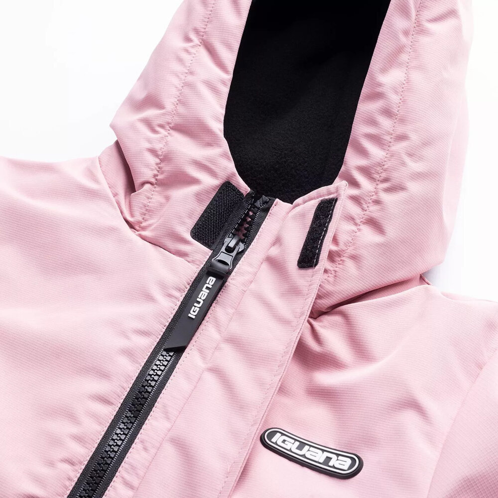 Dziecięca kurtka bianka kdg marki iguana posiada wygodny, lekko przedłużony krój. ściągacz w talii odpowiada za dobre dopasowanie do sylwetki.