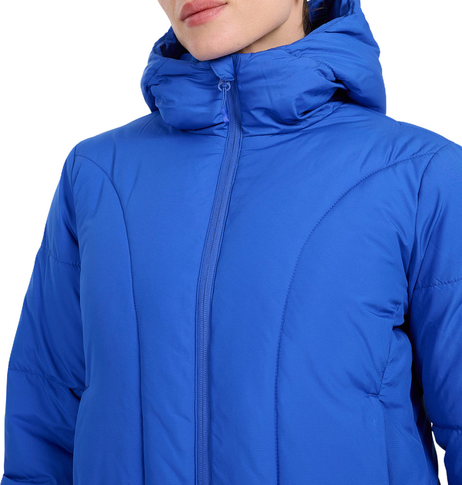 Nieodpinany kaptur bez regulacji osłania głowę przed opadami, a kołnierz osłania wrażliwą szyję przed podmuchami chłodnego powietrza. Elastyczne wykończenie rękawów wspiera ochronę przed zimnem.