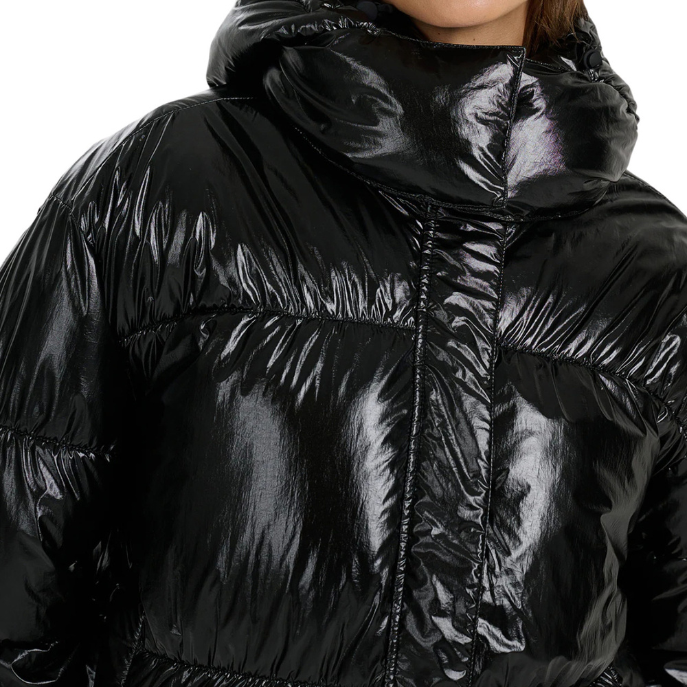Dane techniczne:· Materiał główny: 100% poliamid· Podszewka: 100% poliester· Wypełnienie: 100% poliester· Hydrofobowa powłoka zewnętrzna - ogranicza wchłanianie wilgoci i chroni przed lekkim deszczem· Syntetyczne wypełnienie puchowe - zachowuje ciepło nawet w wilgotnych warunkach· Oversizowy, luźny krój - zapewnia swobodę ruchów i modny wygląd· Długość do bioder - komfortowa na co dzień i podczas zimowych spacerów· Gładka podszewka poliestrowa - ułatwia zakładanie i poprawia komfort noszenia· Odpinany kaptur z regulacją - dopasujesz go do swoich potrzeb i warunków pogodowych· Wysoki kołnierz - dodatkowa ochrona szyi przed wiatrem i zimnem· Elastyczne mankiety - dopasowują się do nadgarstków i zatrzymują ciepło· 2 kieszenie boczne - idealne na dłonie lub najpotrzebniejsze drobiazgi· Wewnętrzna kieszeń bez zapięcia - dodatkowe miejsce na telefon lub dokumenty· Zamek z plisą przeciwwiatrową - blokuje dostęp chłodnego powietrza do wnętrza kurtki· Regulacja dołu kurtki - ściągacz tunelowy pozwala dopasować obwód do sylwetki