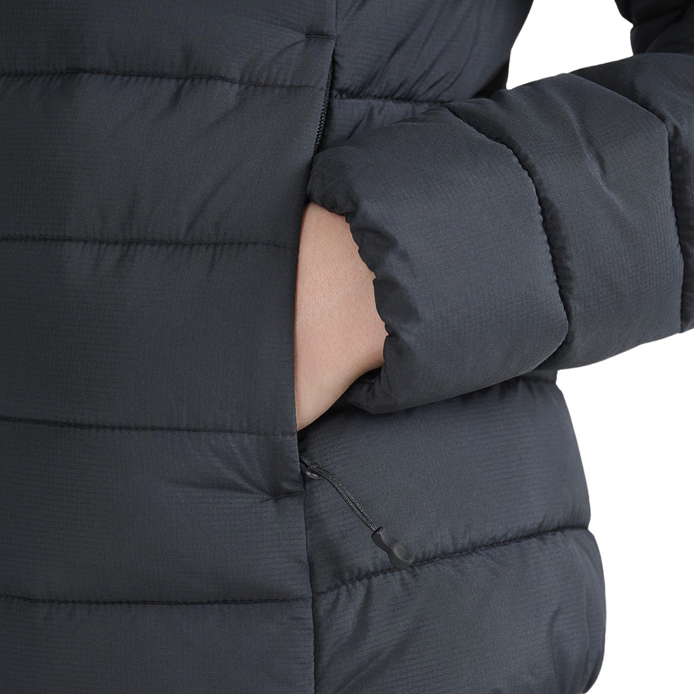 Elastyczne wykończenie rękawów i dołu wspiera ochronę przed zimnem. Długi zamek na całej swojej długości zyskał wewnętrzną listwę przeciwwiatrową, która wspiera ochronę przed zimnem,a zakończenie w postaci miękkiej patki, zapobiega przypadkowemu przycięciu podbródka. Zewnętrzne i wewnętrzne kieszenie oferują wygodne miejsce na podręczne drobiazgi.