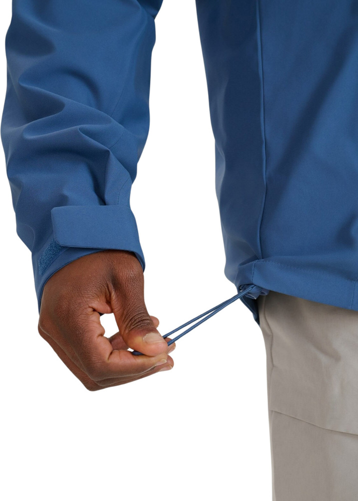 W miejscach szczególnie narażonych na działanie opadów (kaptur i ramiona) użyto podklejanych szwów krytycznych, które wspierają ochronę przed przenikaniem wilgoci do wnętrza. Regularny krój o standardowej długości sięgającej do linii bioder naturalnie układa się na sylwetce zapewniając nieograniczony zakres ruchów.
