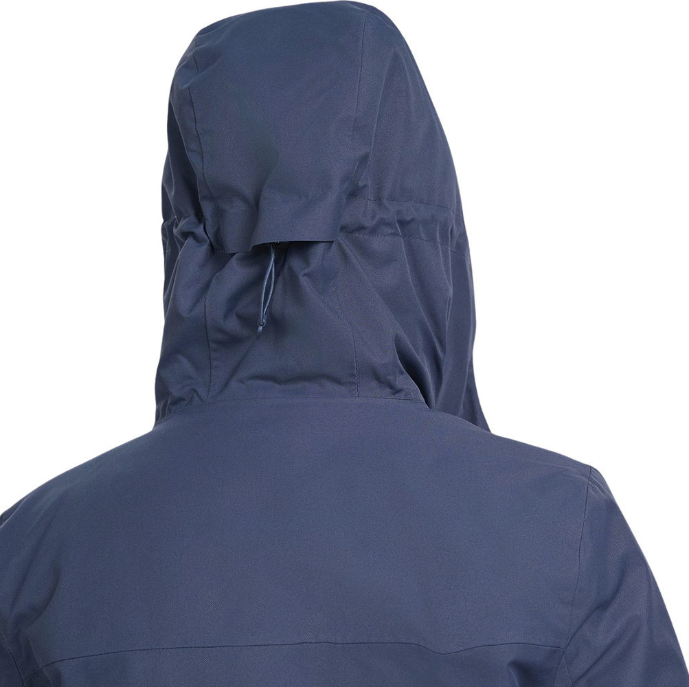 W miejscach szczególnie narażonych na działanie opadów (kaptur i ramiona) użyto podklejonych szwów krytycznych, które wspierają ochronę przed przenikaniem wilgoci do wnętrza. Nieodpinany kaptur z profilowanym daszkiem oraz regulacją objętości i głębokości ogrzeje głowę podczas zimowych spacerów.