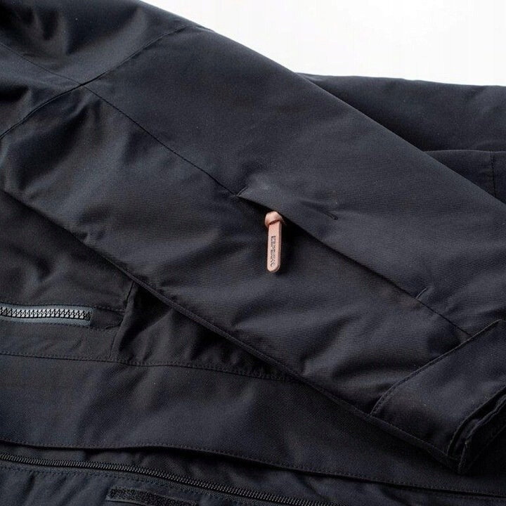 Produkt od firmy Icepeak posiada dwie pojemne boczne kieszenie z podszewką, a także kieszeń na piersi oraz specjalną kieszonkę na skipassa znajdującą się na rękawie. Wszystkie cztery kieszenie są zapinane na zamek.