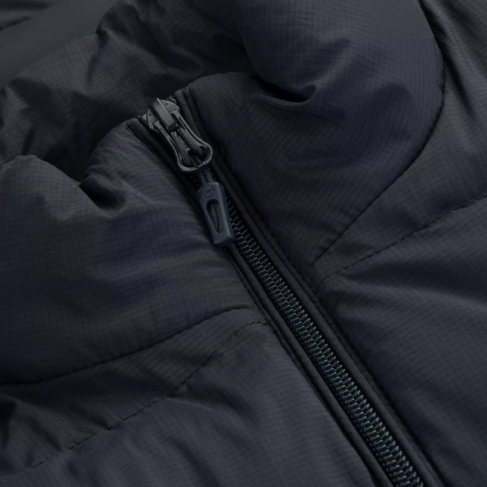 Materiał kurtki posiada ripstop, czyli wzmocnienie specjalnym włóknem, które chroni przed rozdarciem materiału.