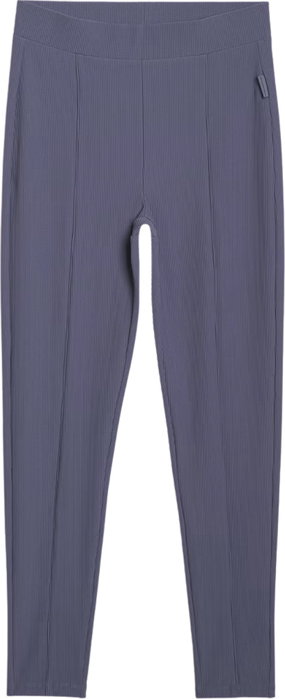 Legginsy wykonano z materiału syntetycznego, który zapewnia trwałość i jest łatwy w pielęgnacji. Prążkowana struktura jest estetycznym wykończeniem, a jednolita kolorystyka współgra z wieloma stylizacjami.