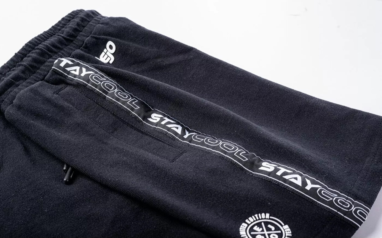 Szorty są wyposażone w praktyczne kieszenie oraz sznurek do regulacji w pasie.