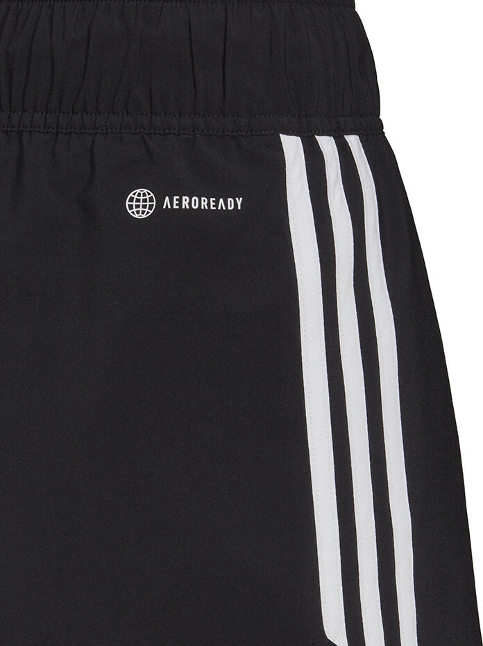 Czarne spodenki dopełniono białymi akcentami, które są charakterystyczne dla marki adidas, dzięki czemu całość prezentuje sportowy charakter i uwydatnia wysoka jakość wykonania.