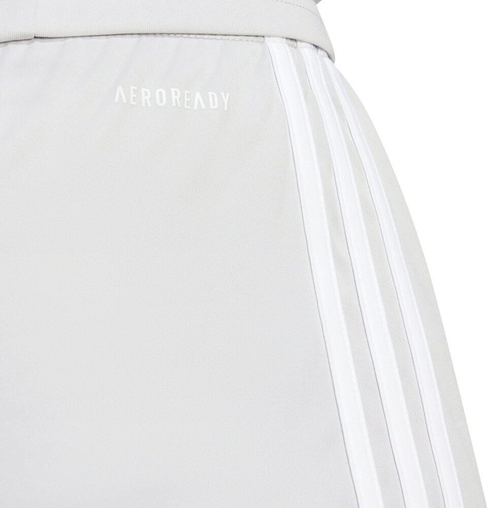 Regularny krój zyskał elastyczną talię, która dodatkowo jest regulowana za pomocą sznurka, dzięki czemu w łatwy sposób można dopasować spodenki do sylwetki. Technologia Aeroready wspiera odprowadzenie wilgoci, co pozwoli na pełne skupienie w trakcie zaciętej walki o przejęcie kontroli nad piłką.
