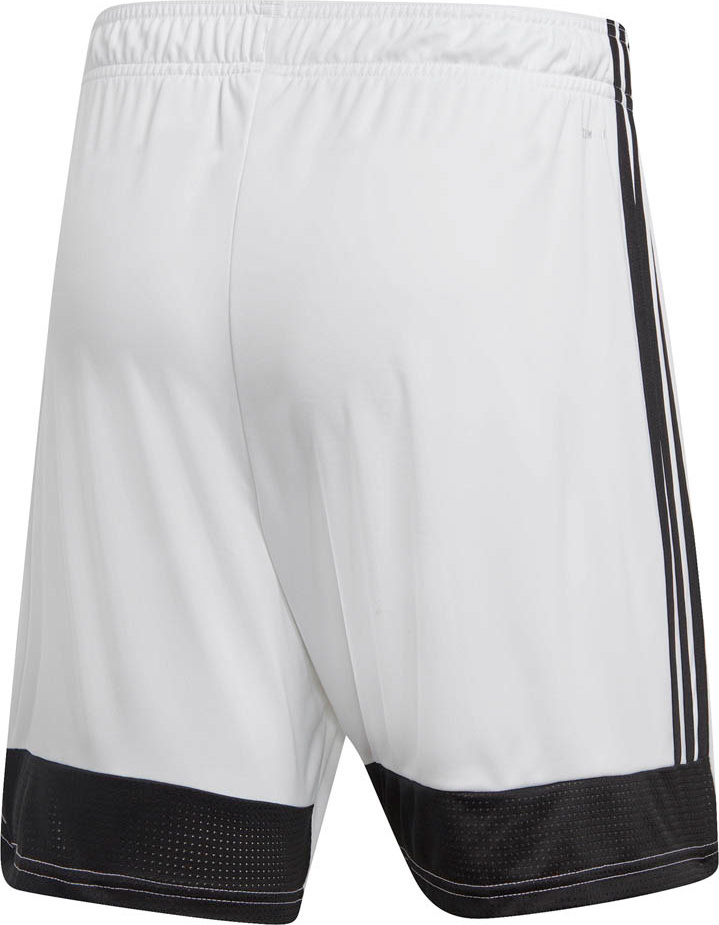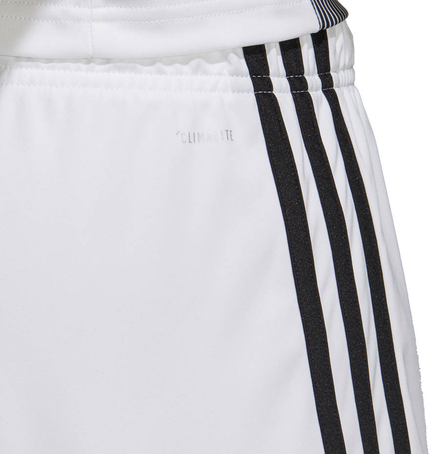 Wyposażone w oddychającą tkaninę Climalite, która odpowiada za optymalne odprowadzanie potu oraz zabezpiecza ciało przed przegrzaniem. Białe spodenki piłkarskie ozdobiono charakterystycznymi czarnymi paskami na nogawce.