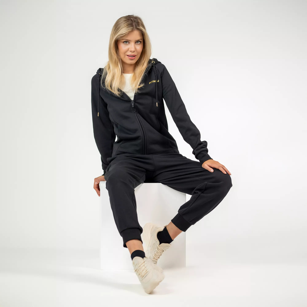 Szeroka gumka w pasie ze sznureczkiem umożliwia indywidualne dopasowanie do sylwetki. ściągacze na dole nogawek utrzymują je na swoim miejscu niezależnie od aktywności, którą wykonujesz.