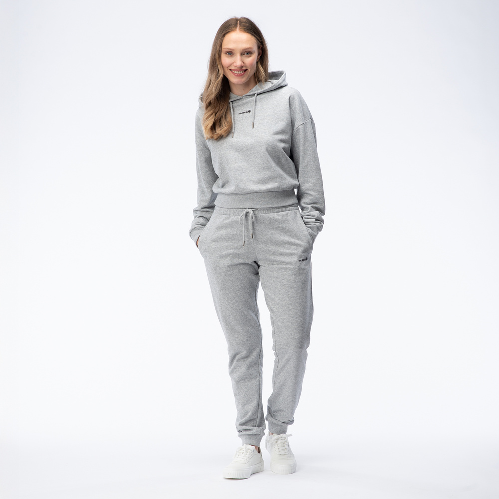 Damskie spodnie Iguana Ichiro w kolorze boysenberry/potent purple wykonane są z miękkiej, przyjemnej w dotyku dzianiny frotte o składzie 80% bawełny i 20% poliestru.