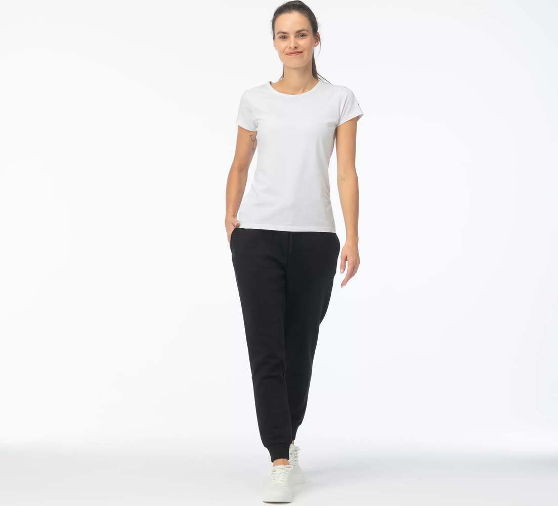 Szeroka gumka w pasie dobrze się dopasowuje do damskiej sylwetki. ściągacze na dole nogawek utrzymują je na swoim miejscu.