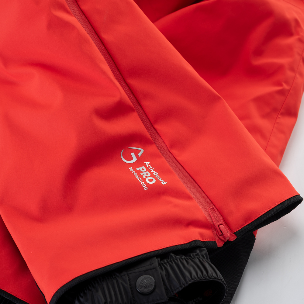 Specyfikacja:– wodoodporność: 20 000 mm h₂o– oddychalność: 20 000 g/m²/24h– technologia activguard pro– system recco– ochrona przed wiatrem– 2-warstwowa laminacja– klejone szwy– powłoka dwr– wodoodporne zamki– zamek sbs®– zamki w dolnej części nogawek– fartuch przeciwśnieżny w nogawkach– wewnętrzna kieszeń