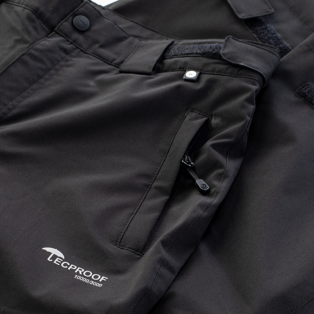Specyfikacja:- wodoodporność: 10 000 mm h2o- oddychalność: 3000 g/m²/24h- ochrona przed wiatrem- 2-warstwowa laminacja- klejone szwy- zamek sbs- elastyczne włókna 4-way stretch- fartuchy przeciwśnieżne w nogawkach- wewnętrzna kieszeń- elementy odblaskowe- podszyte mikropolarem