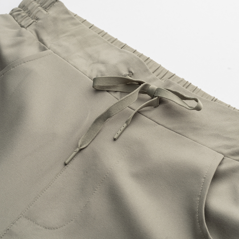 Elastyczna gumka w pasie ze sznureczkiem umożliwia odpowiednie dopasowanie do sylwetki.