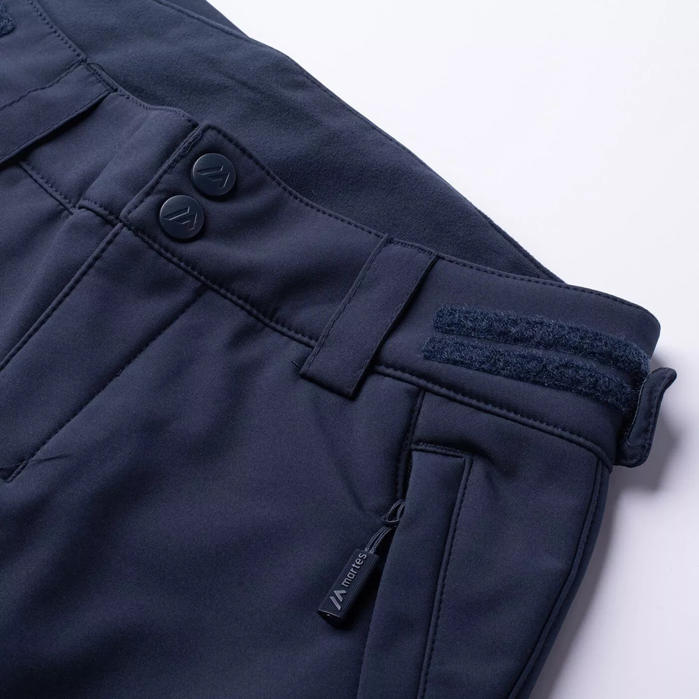 Dziecięce spodnie softshellowe margot jr marki martes essentials posiadają wykończenie z mikropolaru, który zapewni dzieciom odpowiedni komfort termiczny w chłodne dni.