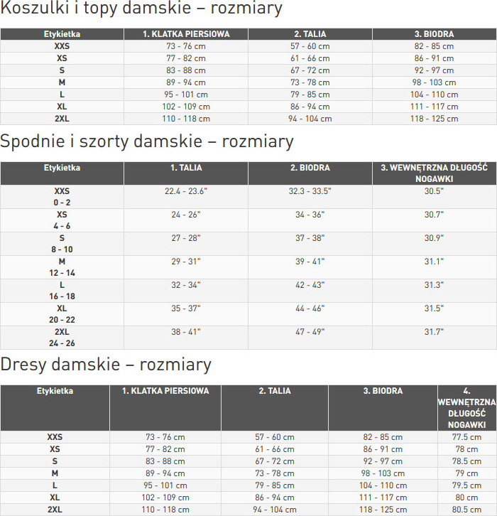Tabela rozmiarowa:
