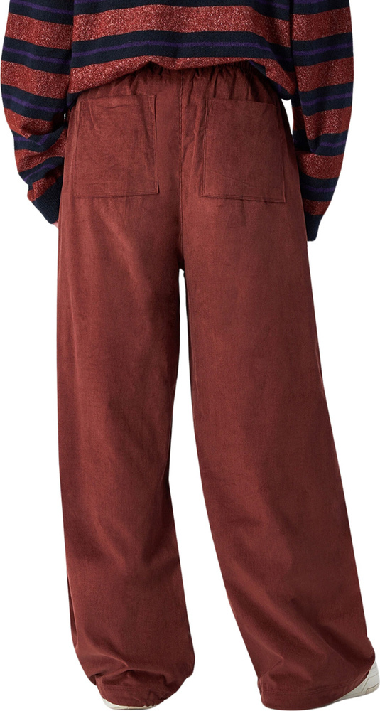 Luźny krój z szerokimi nogawkami wykończonymi ściągaczem ze stoperem swobodnie układa się na sylwetce oferując nieograniczoną mobilność. Elastyczna talia z zewnętrznym sznurkiem do regulacji pozwala na indywidualne dopasowanie do sylwetki.
