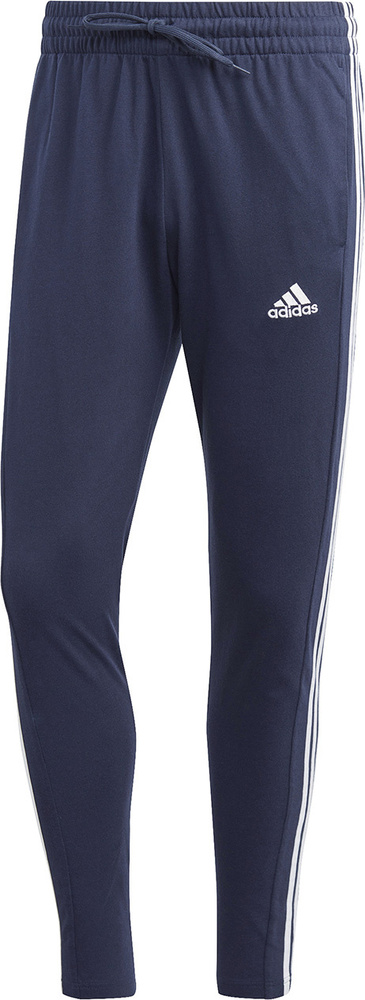 Spodnie męskie adidas Essentials Single Jersey Tapered Open Hem 3-Stripes granatowe IC0045