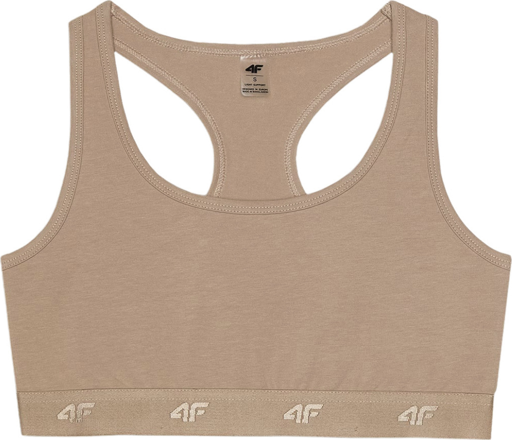 Stanik sportowy damski 4F zapewniający niskie wsparcie polecany jest do aktywności o mniejszej intensywności np.