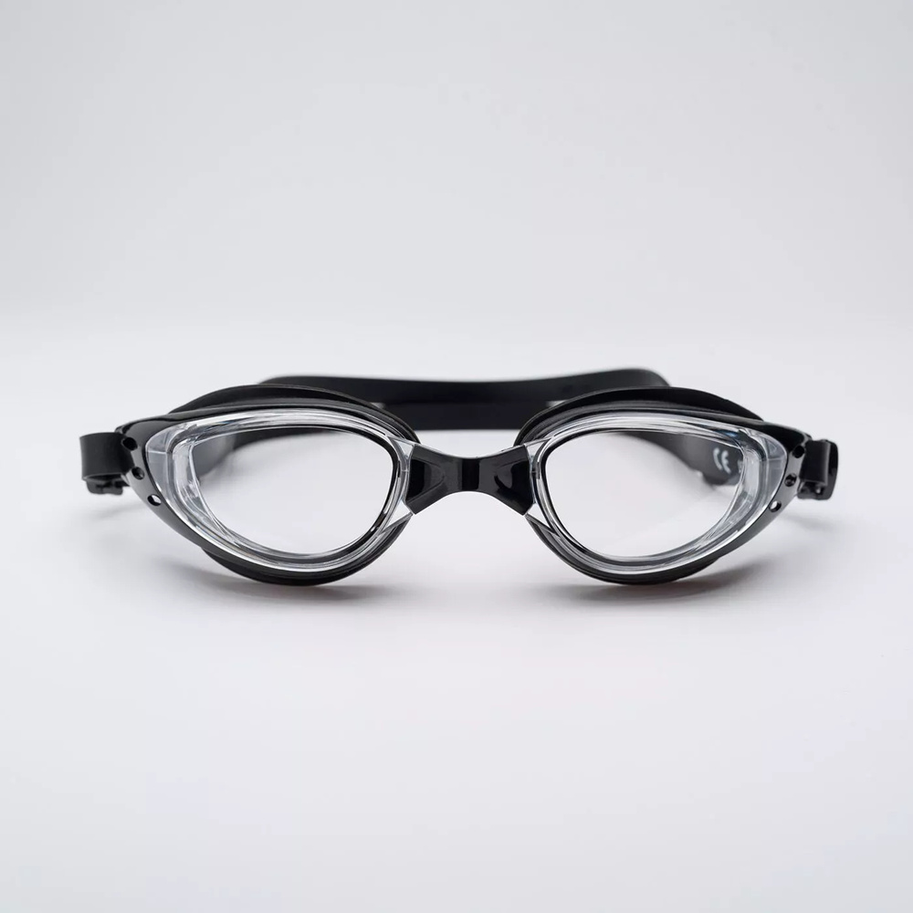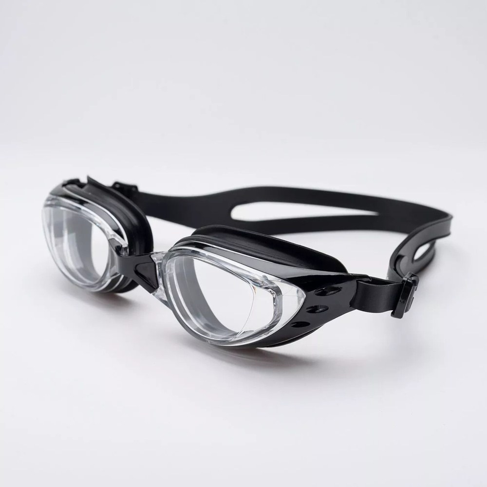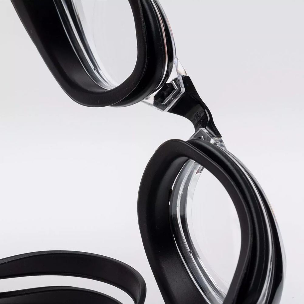 Regulowany pasek stabilizuje okulary na głowie podczas pływania.