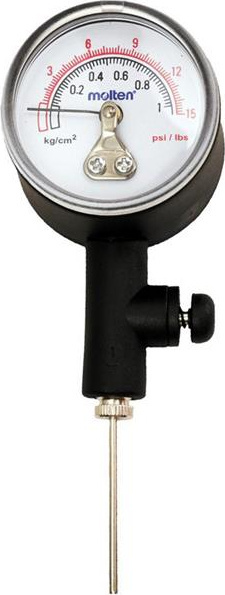 Manometr Molten z wkręcaną metalową igłą to niezbędnik każdej osoby, która chce na bieżąco sprawdzać poziom ciśnienia powietrza w piłkach.