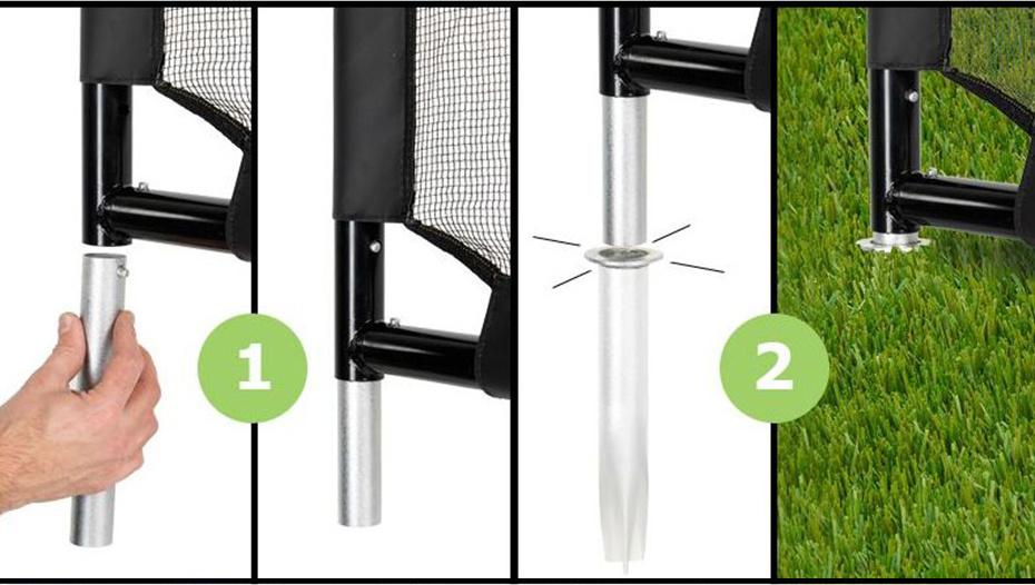 Śledzie, słupki wykonane ze stali oraz opatentowany system kotwienia sprawiają, że bramka po rozłożeniu jest bardzo stabilna.