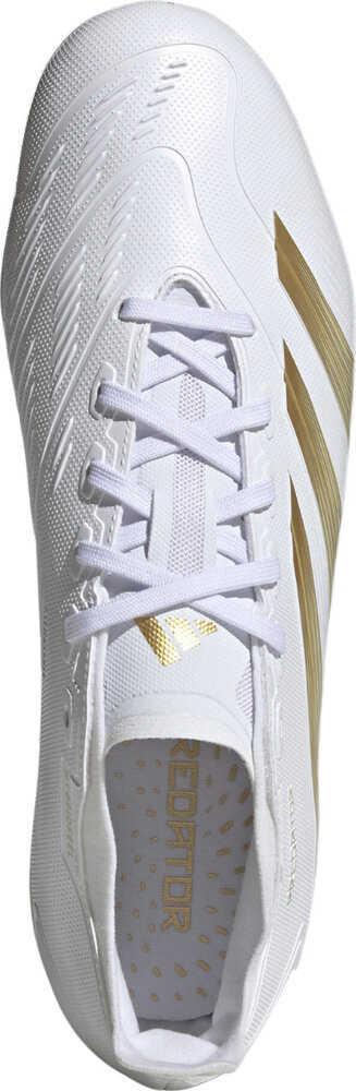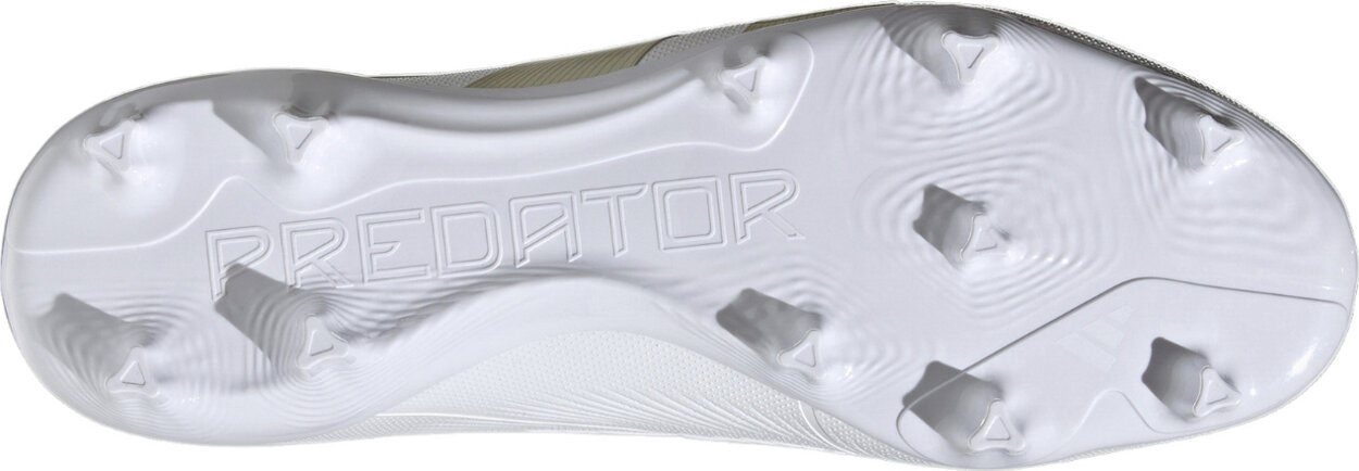 Predator w najnowszej odsłonie pochodzi z kolekcji Dayspark Pack, która powstała z myślą o mistrzowskim poziomie kontroli i szybkim, instynktownym przejściu do ataku. Syntetyczna cholewka Hybridfeel została pokryta wypukłą teksturą i wyposażona w przyczepne elementy Strikescale na wewnętrznym boku stopy dla naturalnego przejęcia kontroli, co przekłada się na bardziej doprecyzowane podania. Sznurowany model z jednoczęściowym językiem z podszewką zadba o naturalne dopasowanie i komfort noszenia butów.