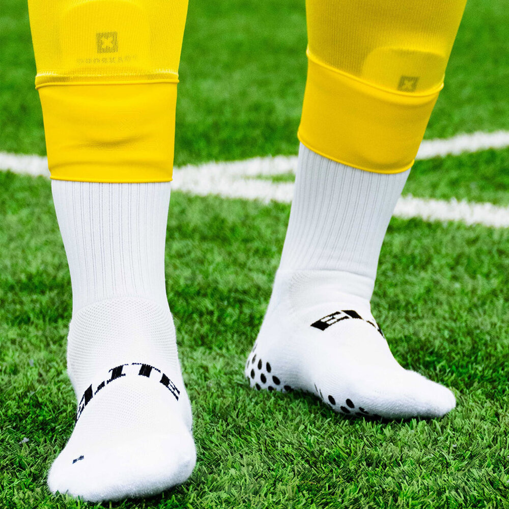 Właściwości trwałego, silikonowego materiału sprawiają, że ochraniacze mocno przylegają do nogi zapewniając ich stabilizację na odpowiednim miejscu podczas całego meczu lub treningu.