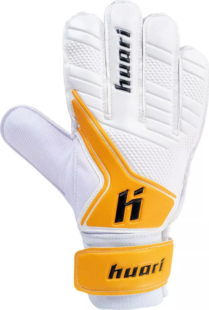 Rękawice bramkarskie higino senior marki huari o kroju typu flat, posiadający zewnętrzne szwy.