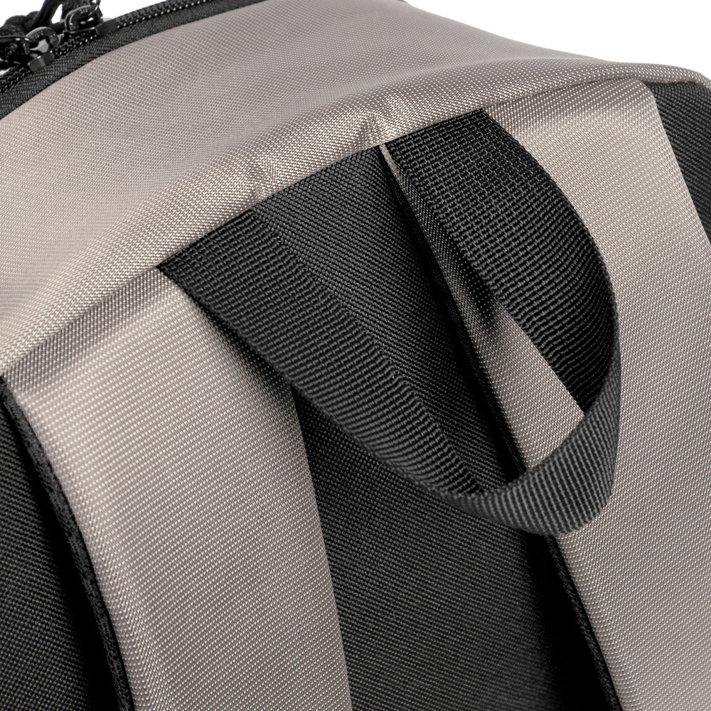 Wykończony hydrofobowym spodem i materiałem głównym, chroni zawartość przed wilgocią i zabrudzeniami.